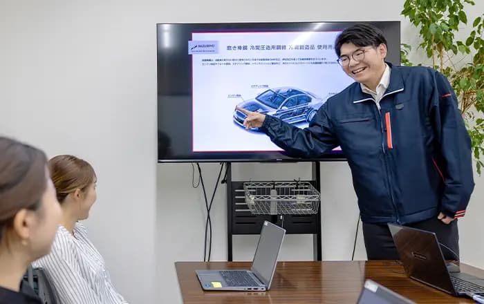 地元に就職したかったからです。自動車業界に携わりたい、お客様と会話ができる仕事をしたい、という考えがあり、鈴豊精鋼はピッタリだと考えていました。会社説明会のときの対応に人を大切にする姿勢や温かみを感じ、入社を決めました。
